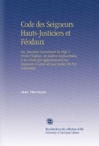 Read Online and Download Ebook. Read Code des Seigneurs Hauts-Justiciers et Féodaux: Ou, Maximes Concernant les Fiefs & Droits Féodaux, les Justices Seigneuriales, & les Droits Qui ... À Cause de Leur Justice En Pay Coutumier. PDF BY D. DOWNLOAD EBOOK : Read PDF Code des Seigneurs Hauts-Justiciers et Féodaux: Ou, Maximes Concernant les Fiefs & Droits Féodaux, les Justices Seigneuriales, & les Droits Qui ... À Cause de Leur Justice En Pay Coutumier. Online BY DATHAN AUERBACH PDF ...