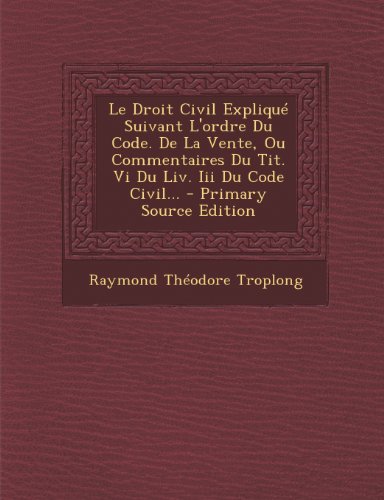 Download PDF. Click to download a PDF version of the text. Download PDF. Download Kindle Le Droit Civil Explique Suivant L'Ordre Du Code. de La Vente, Ou Commentaires Du Tit. VI Du LIV. III Du Code Civil... - Primary Source Edition PDF. Click to download Le Droit Civil Explique Suivant L'Ordre Du Code. de La Vente, Ou Commentaires Du Tit. VI Du LIV. III Du Code Civil... - Primary Source Edition PDF Free text version of the text.